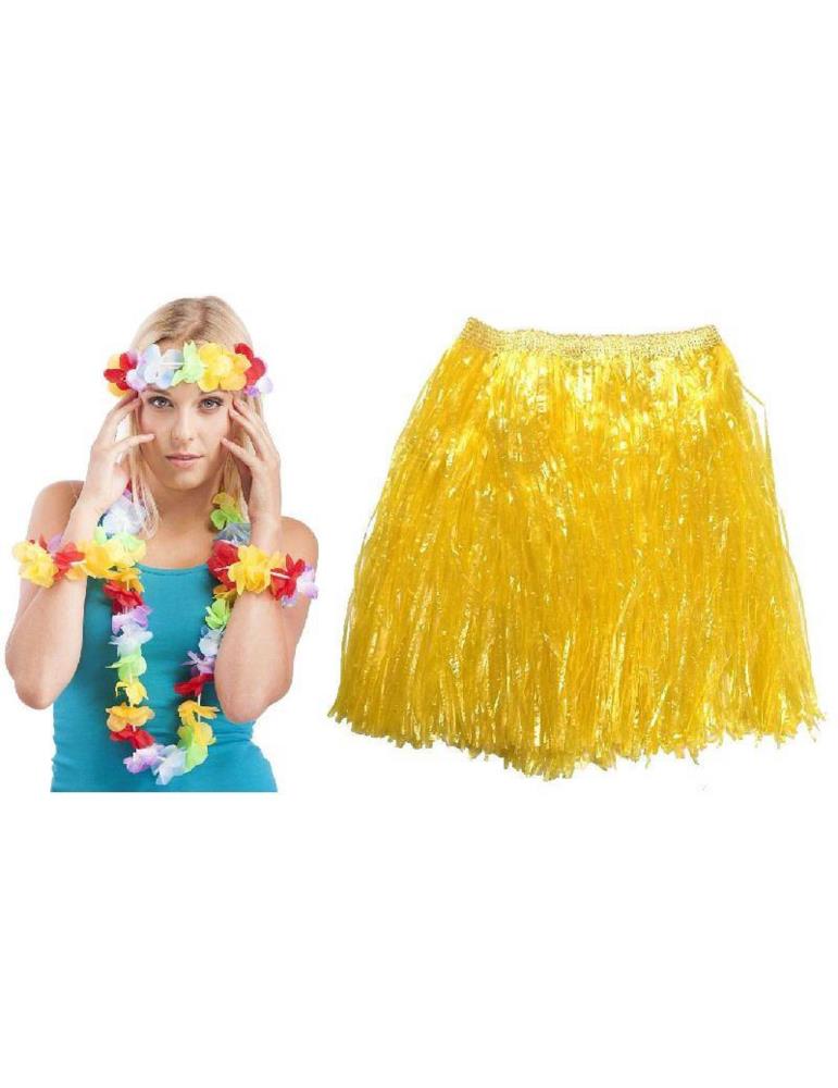 Zestaw Hawajski Żółty CA352 5el spódnica naszyjnik opaska bransoletki