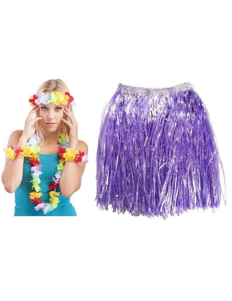 Zestaw Hawajski Fioletowy CA354 5el spódnica naszyjnik opaska bransoletki Aloha