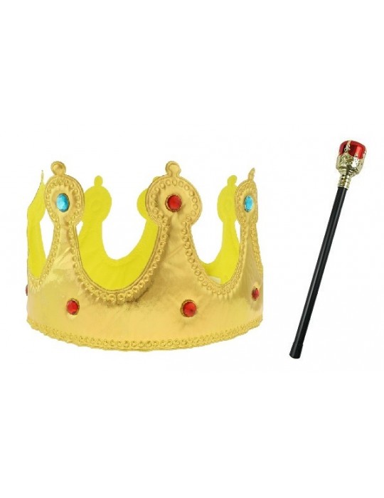 1. Złota Korona wykonana z miękkiego, usztywnionego materiału zdobiona imitacją drogocennych kamieni.- AK215