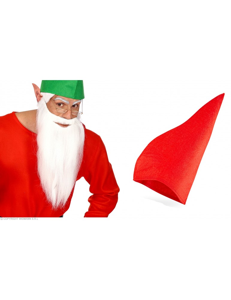 Czerwona spiczasta czapka Krasnoludka to doskonałe uzupełnienie stroju na karnawał,