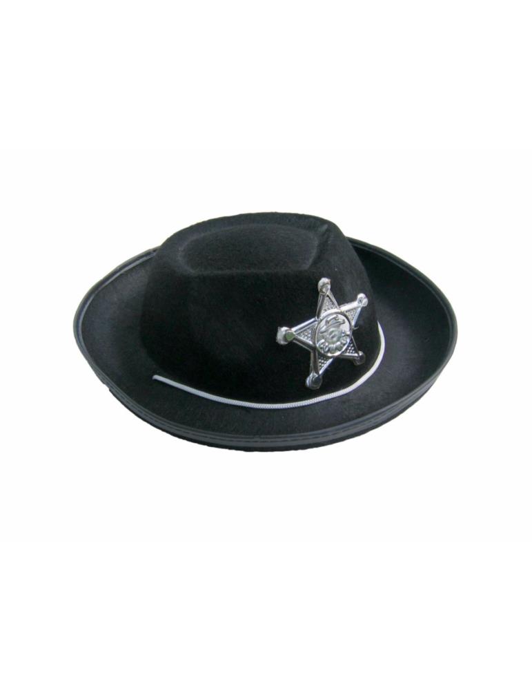 Wykonany ze sztywnego filcu w kolorze czarnym ozdobiony srebrną gwiazdą szeryfa.