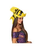 Czapka Ryba wykonana z miękkiego materiału, ozdobiona cekinami.