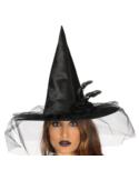 Kapelusz czarownicy wykonany jest z lekkiego przezroczystego materiału z nadrukiem czarnego pająka i pajęczyny.