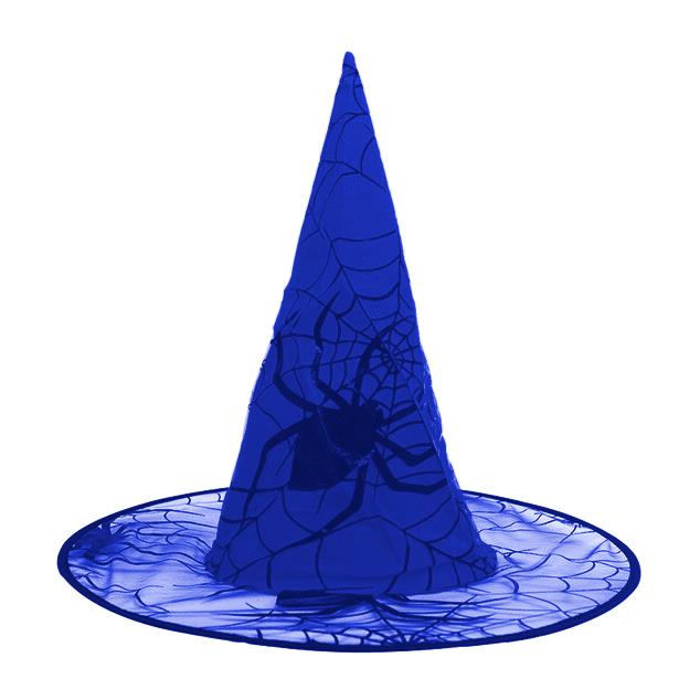Kapelusz Czarownicy Niebieski CC246 z pajęczyną i Pająkiem Wiedźma Halloween Andrzejki