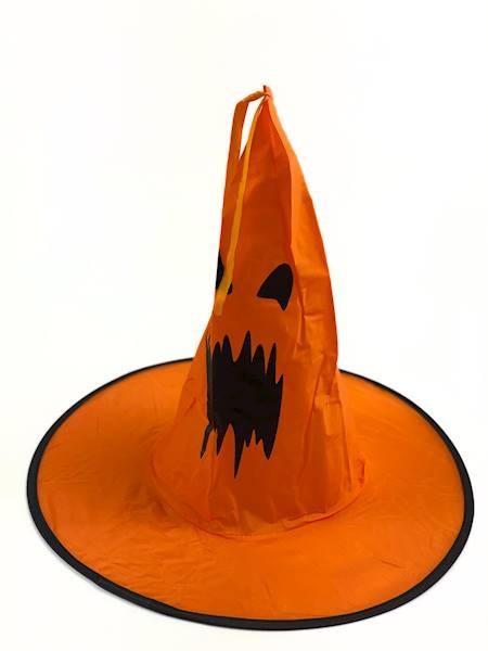 Kapelusz Czarownicy Pomarańczowy A2279 dziecięcy z buzią halloween czapka dynia