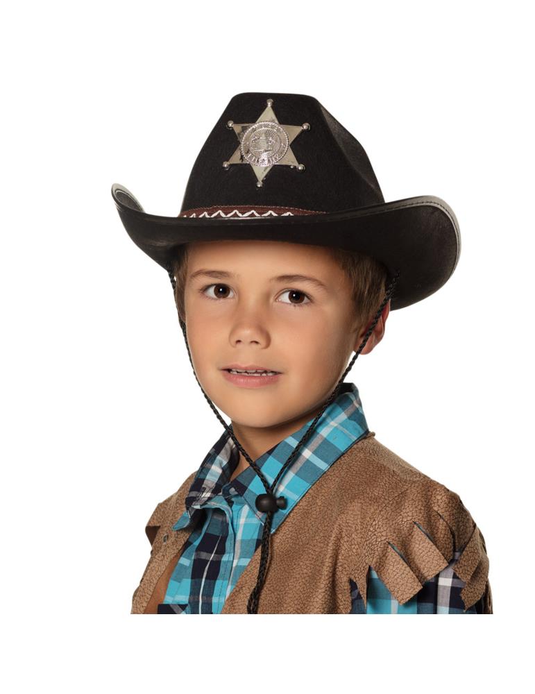 Kapelusz Kowboj Dziecięcy Czarny 04110C western kowbojski dziki zachód country srebna gwiazda szeryf