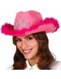 Kapelusz Kowbojski różowy 04392 z diademem Wieczór Panieński Kowbojka z cekinami damski
