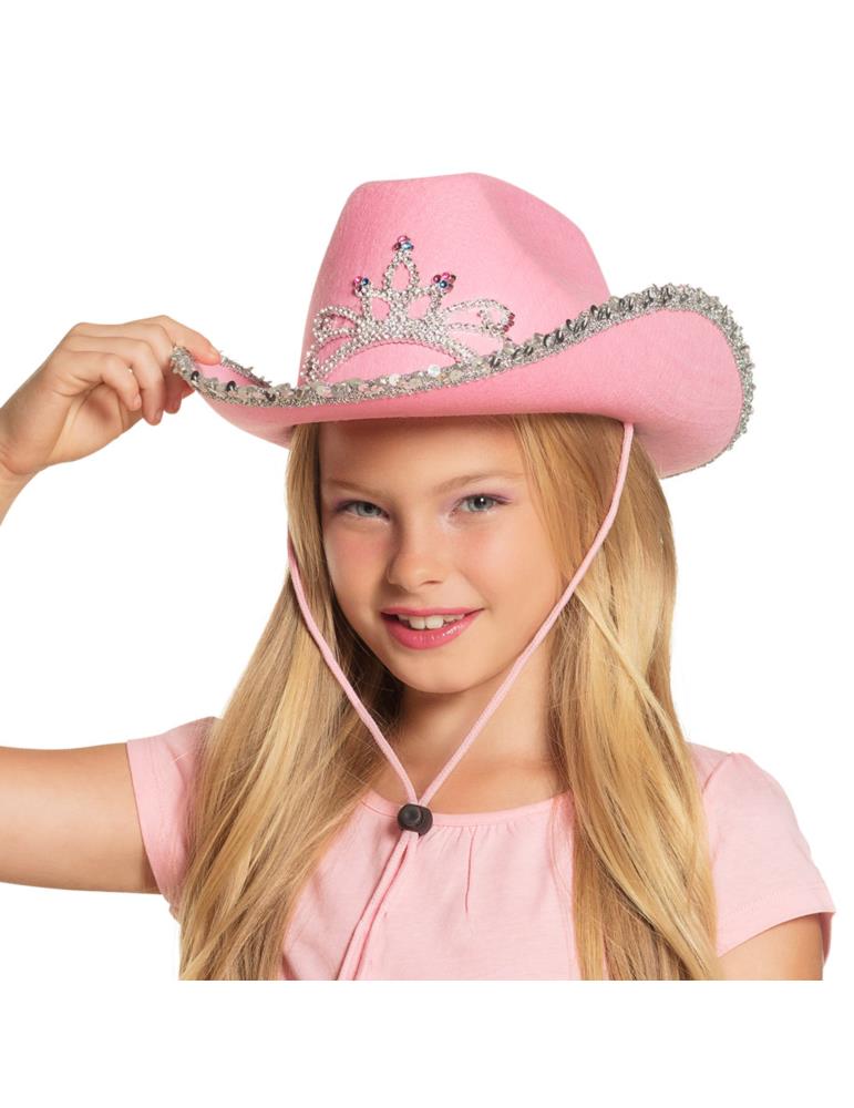 Kapelusz Kowbojski różowy 04392 z diademem Wieczór Panieński Kowbojka z cekinami damski
