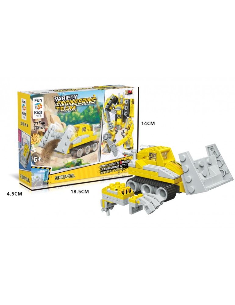 W kolekcji VARIETY ENGINEERING TEAM znajduje się 6 pojedyńczych zestawów, m.in: betoniarka, koparka, podnośnik.