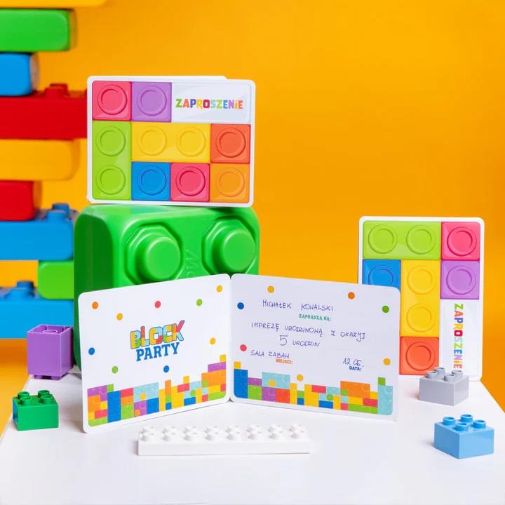 To dla dziecka wielka przyjemność zaprosić koleżanki i kolegów na przyjęcie, zwłaszcza wręczając takie piękne, kolorowe własnoręcznie wypisane zaproszenie. Gratka dla fanów klocków.