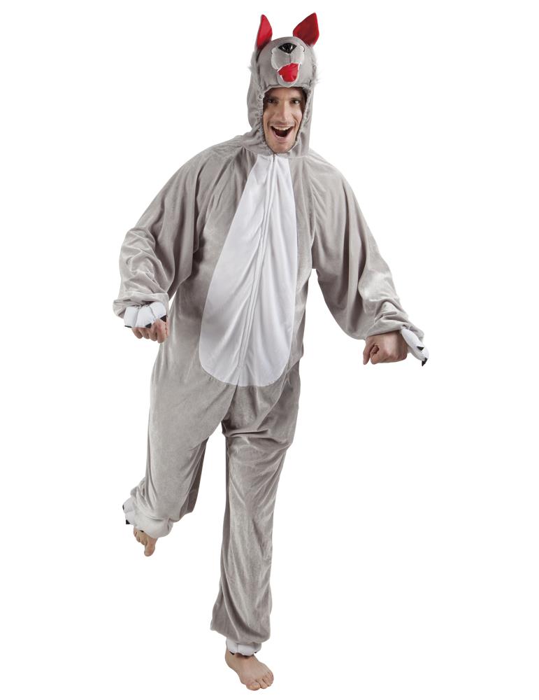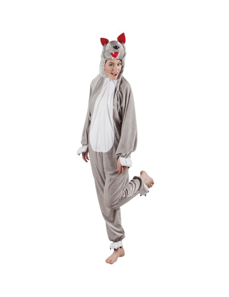 Super kombinezon Wilka, z kapturem w kształcie głowy wilka.