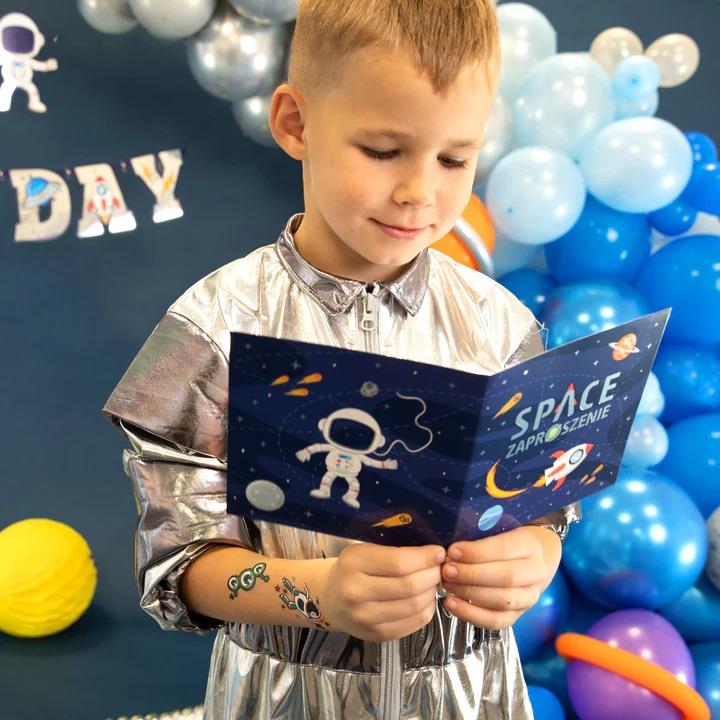 Zaproszenia na imprezę ze wspaniałą grafiką i miejscem na wpisanie imienia młodego badacza kosmosu