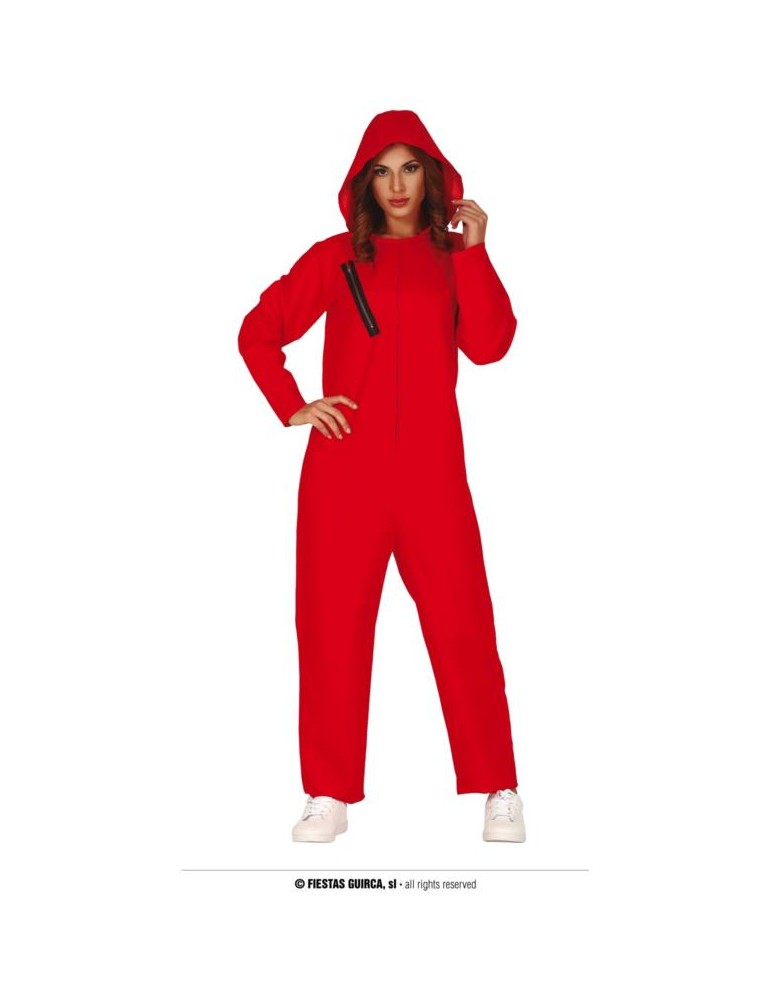 Prosty kostium oparty na czerwonym kombinezonie z kapturem .