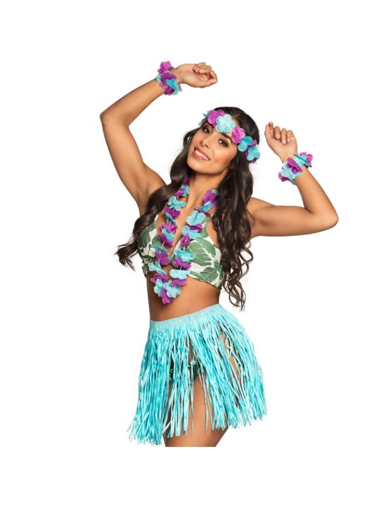 Zestaw Hawajski Kalia NIEBIESKI 52426N Kwiaty spódnica opaska bransoletki