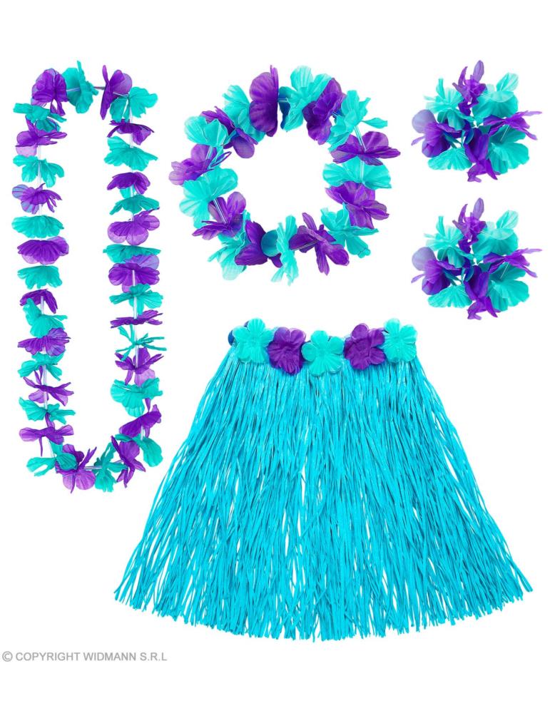 Zestaw Hawajski Aloha LUX 24567W niebieski Spódnica hawajska, naszyjnik, 2 bransoletki