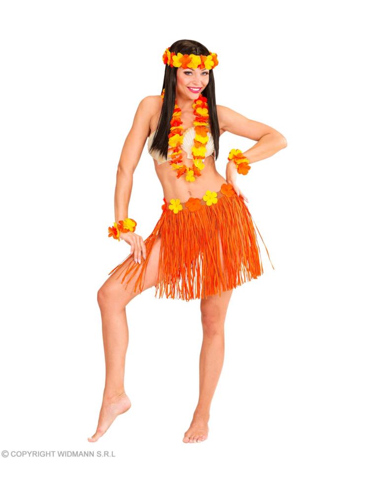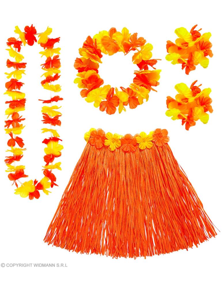Zestaw Hawajski Aloha LUX 24566W Pomarańczowy Spódnica hawajska, naszyjnik, 2 bransoletki