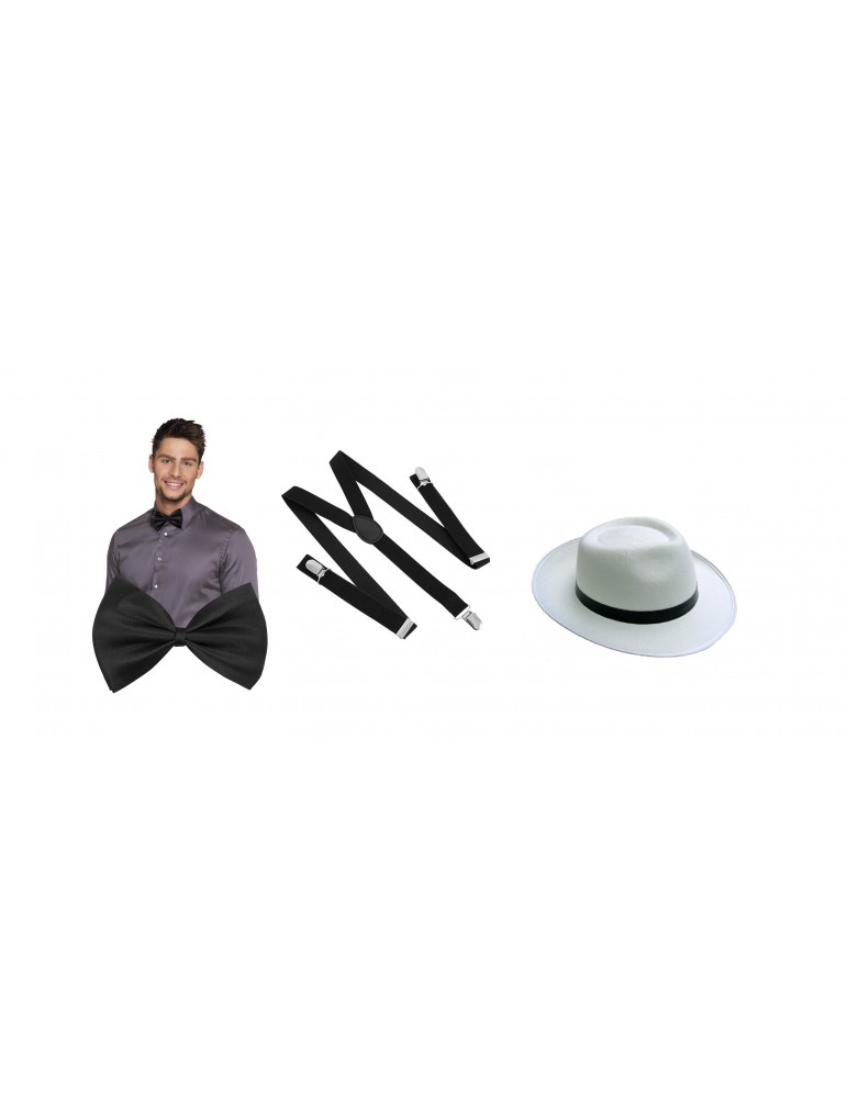 Zestaw Al Capone Lata XX Biały Kapelusz Mucha Szelki 3el MK145