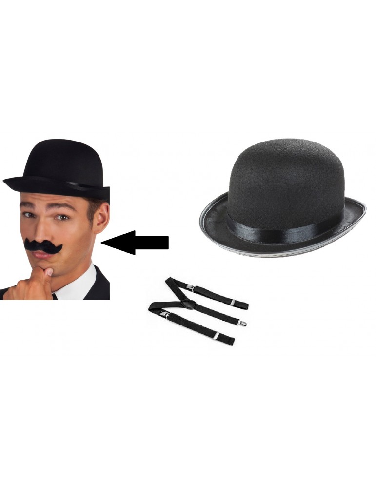 Zestaw Dżentelmena Melonik Szelki Wąsy 3el MK290