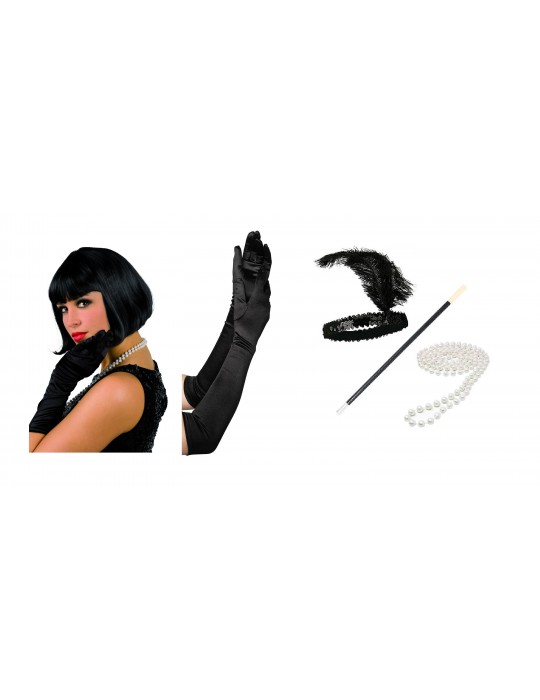 Elegancki zestaw inspirowany stylem lat XX to idealny wybór na tematyczne imprezy czy karnawał. Zawiera czarną opaskę ozdobioną piórkiem, dodającą klasycznej elegancji każdej stylizacji. Dopełnieniem jest długa fifka, podkreślająca styl retro, oraz naszyjnik z białych pereł, który dodaje szyku i blasku. Ten zestaw przeniesie Cię w klimat Wielkiego Gatsby’ego, pełen blichtru i dekadenckiej zabawy.