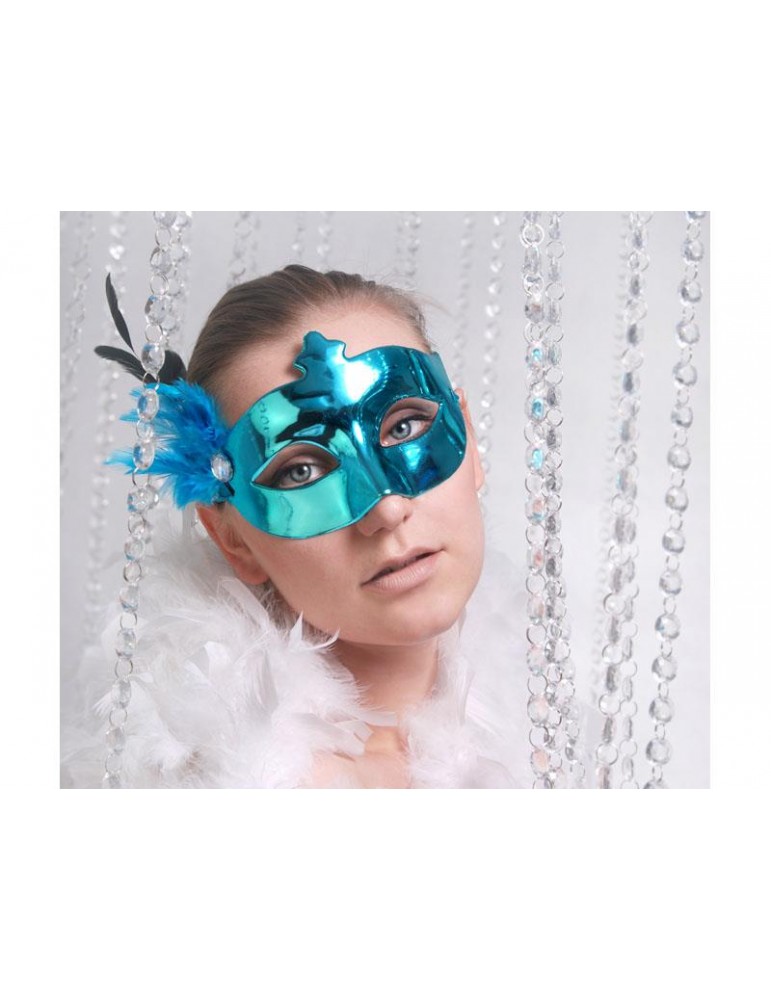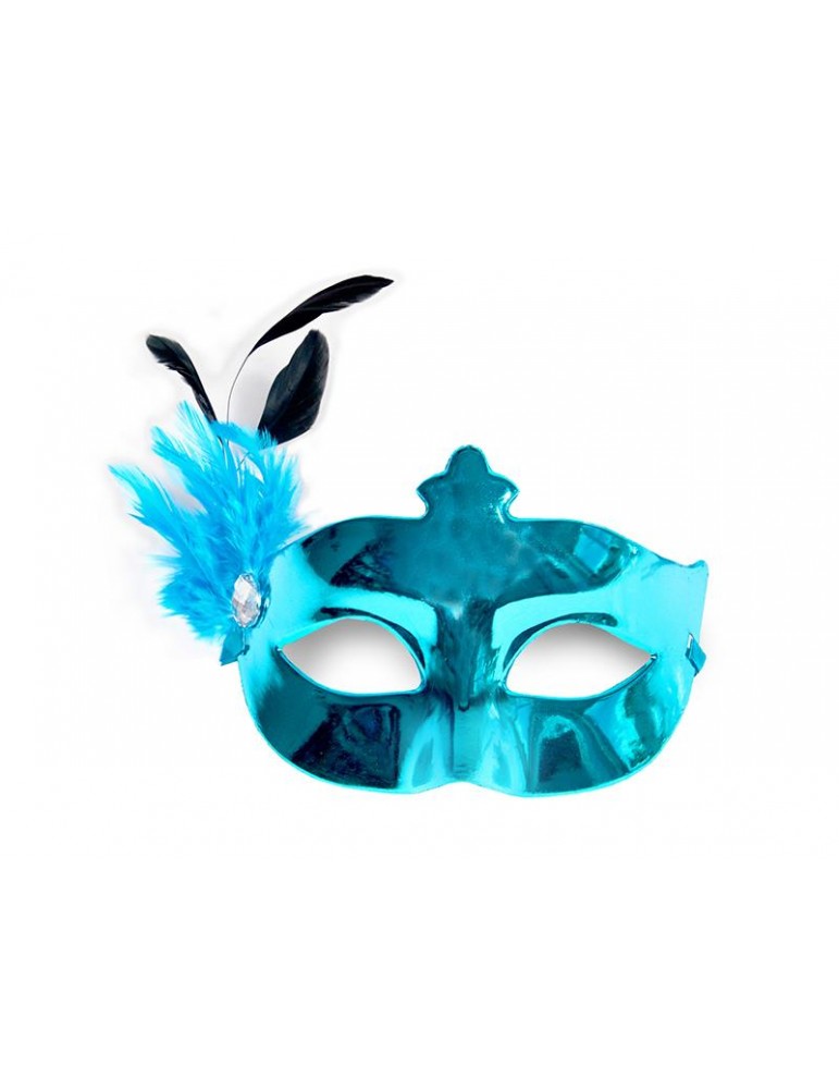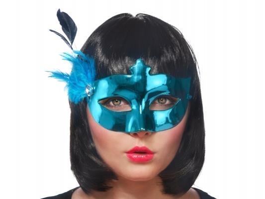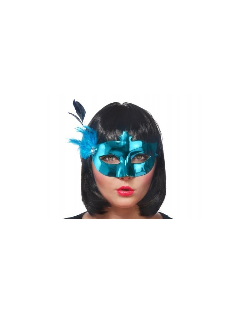 Maska Party z piórkiem, turkus, 1szt.