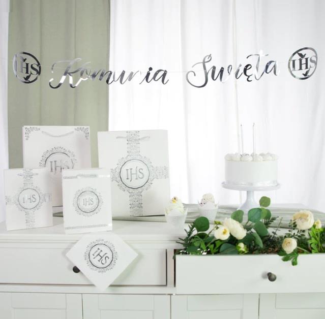 Baner Komunia Święta IHS srebrny 131862 150cm