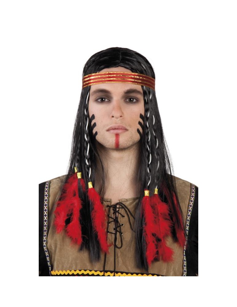Męska peruka indianiana z przepaską na głowę,