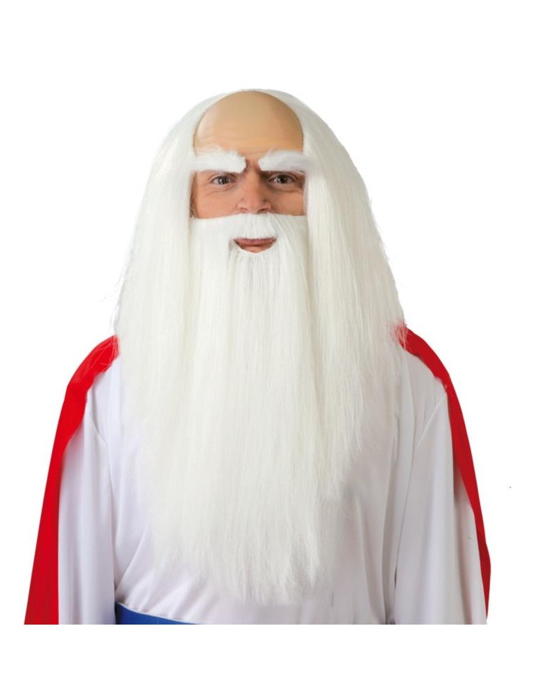 Peruka długa, biała z łysią + broda.