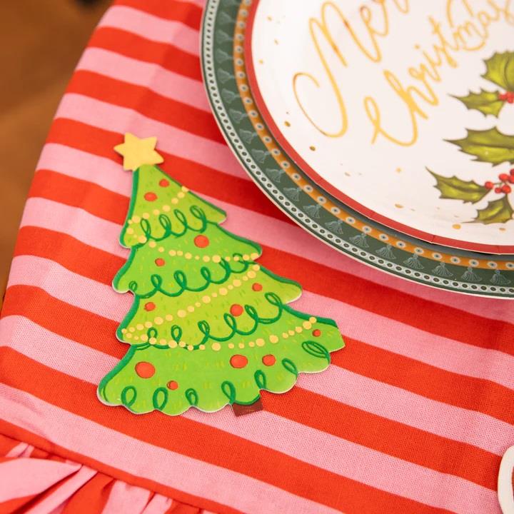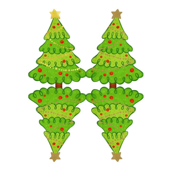 Serwetki papierowe w kształcie choinki. Nawiązują do tematyki bożonarodzeniowej, będą zatem miłym akcentem na świątecznym stole, podkreślając jego okolicznościowy charakter.