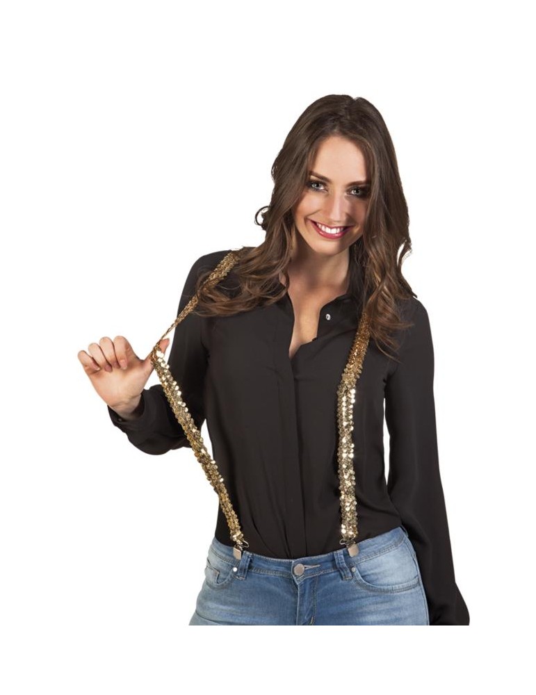 Szelki wykonane z szerokiej gumy w kolorze złotym.