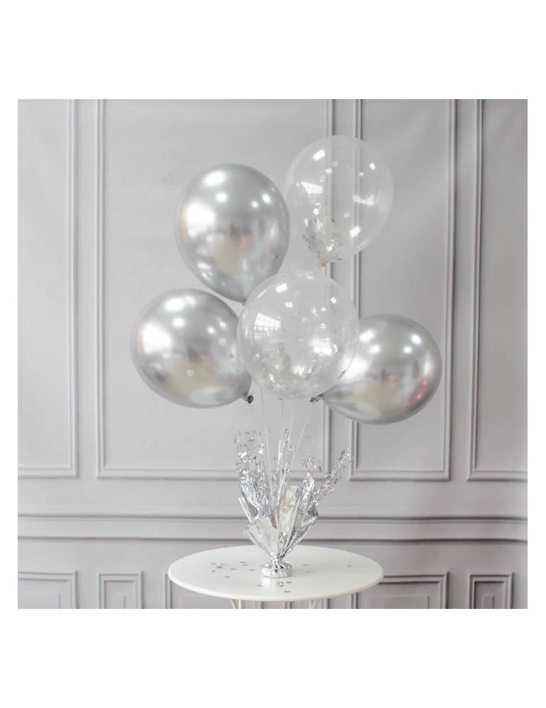 Srebrny ciężarek do balonów z zestawem patyków na 6 balonów.