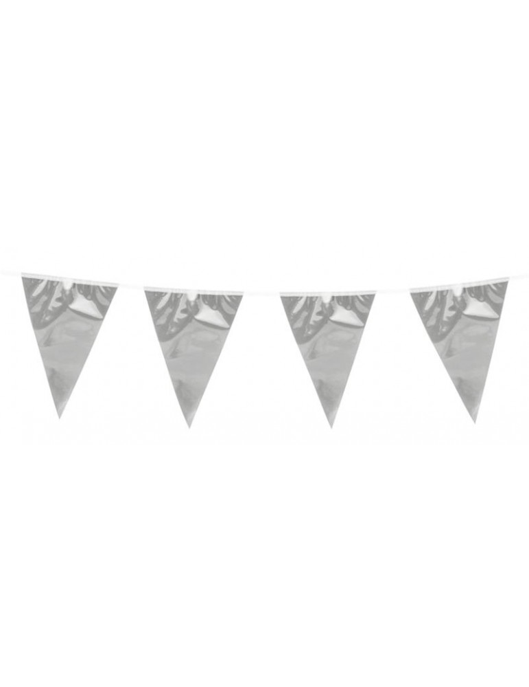 Girlanda, flagi trójkąty w kolorze srebrnym, metalic.
