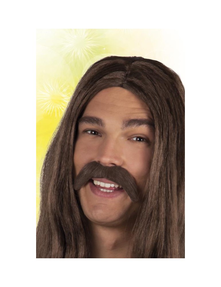 Sztuczne wąsy hipis w kolorze brązowym.
