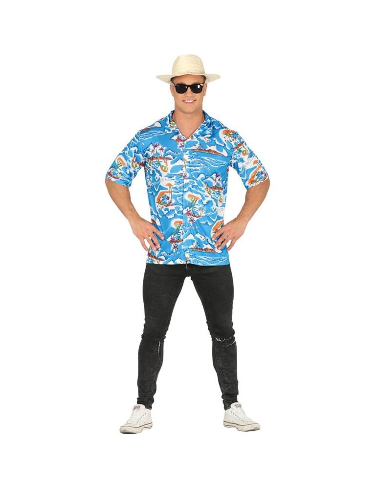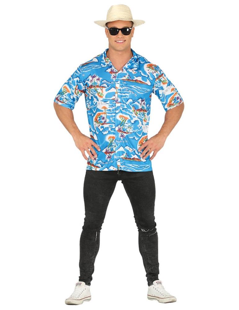 W skład stroju wchodzi kolorowa koszula z krótkim rękawem w stylu hawajskim.