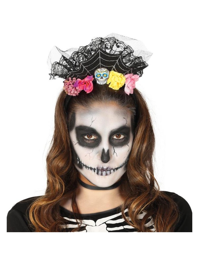 Opaska meksykańska z czaszką 26269BZ meksykański karnawał róże halloween de la muerte