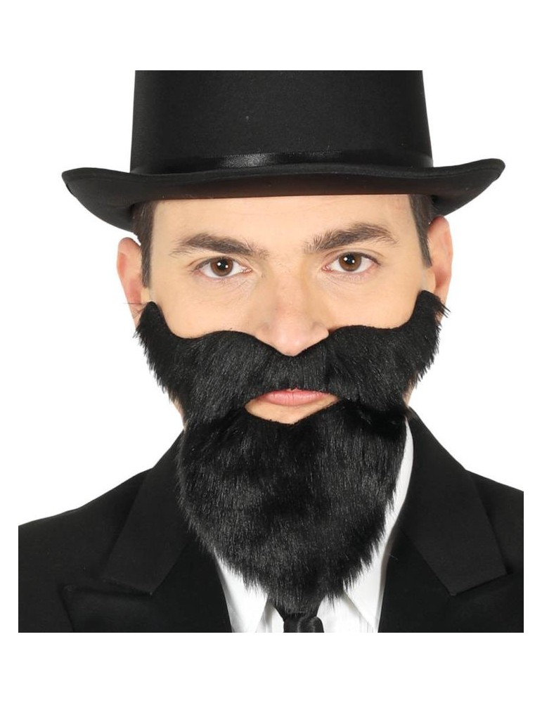 Czarna gęsta broda z wąsami mocowana za pomocą gumki.