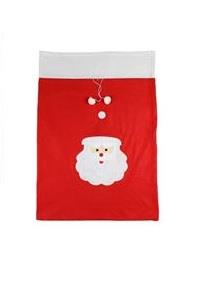 Worek wykonany z materiału imitującego filc w kolorze czerwonym ozdobiony wizerunkim Mikoaja
