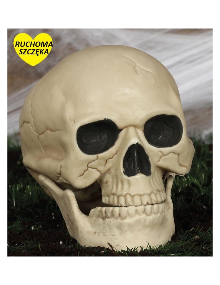 Wykonana ze sztucznego tworzywa czaszka z ruchomą dolną szczęką.