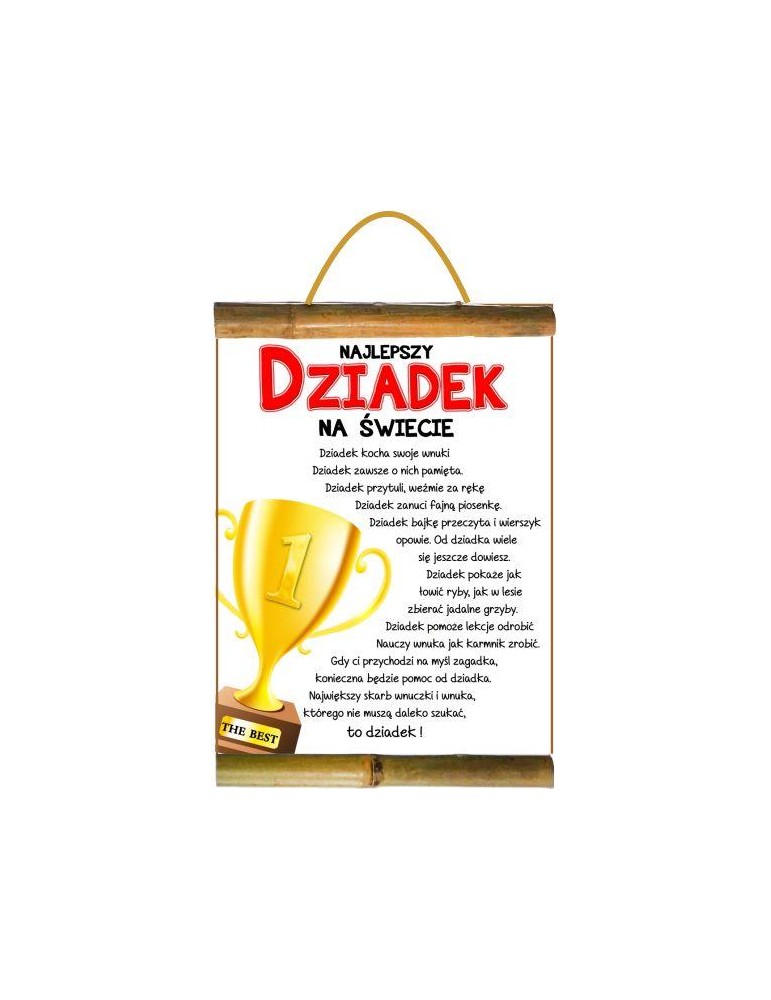 Dyplom w formacie A4, Z bambusową listewką i zawieszką z naturalnego sznurka.