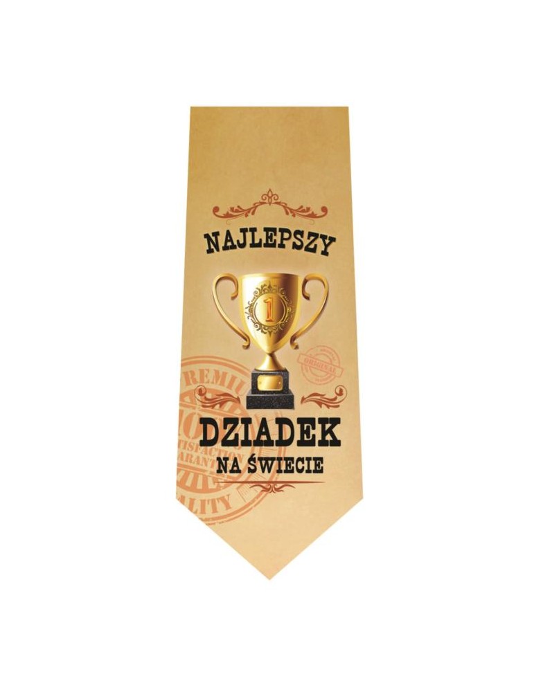 Szukasz oryginalnego i praktycznego prezentu na Dzień Dziadka? Krawat z nadrukiem to idealne rozwiązanie. Krawat ma długości 50 cm od góry węzła oraz szerokości 9 cm (w najszerszym miejscu). Mocowany na gumkę. Idealny prezent. Krawat w kolorze beżowym, z napisem Najlepszy Dziadek na świecie.