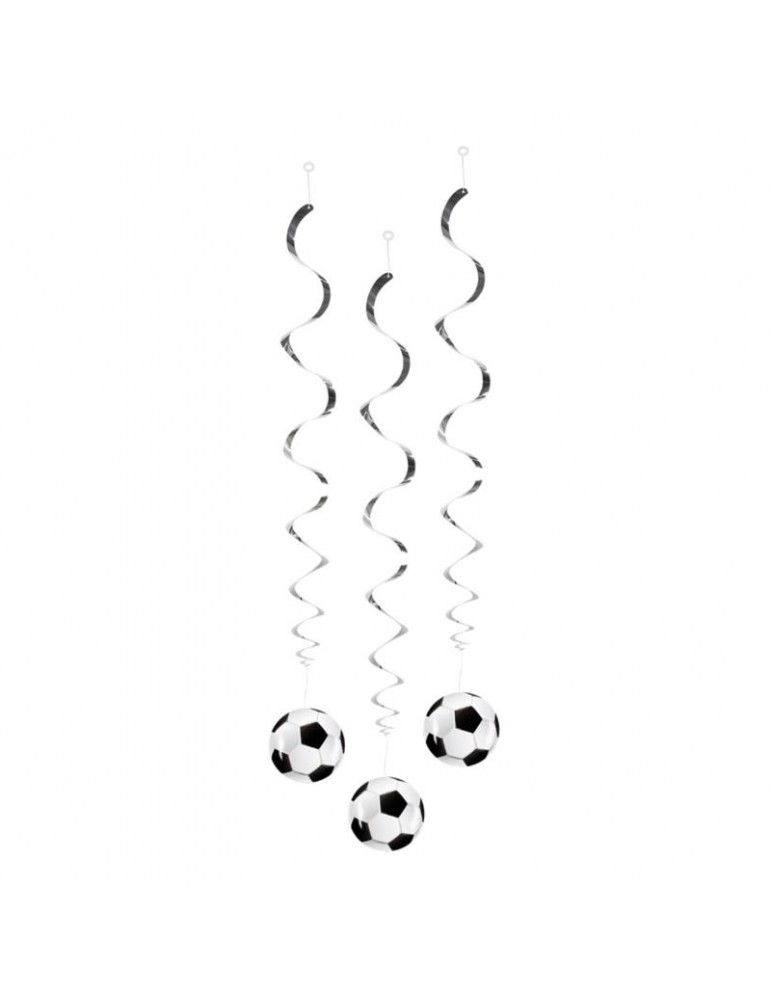 Wiszące dekoracje świderki Piłka nozna - Football. Świderki zakończone dwustronnymi zawieszkami z piłką. Długosć całkowita 85 cm. W zestawie 2 sztuki.