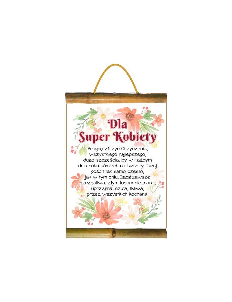 Dyplom w formacie A4 (21 x 30 cm ), ozdobiony bambusową listewką i zawieszką z naturalnego sznurka.