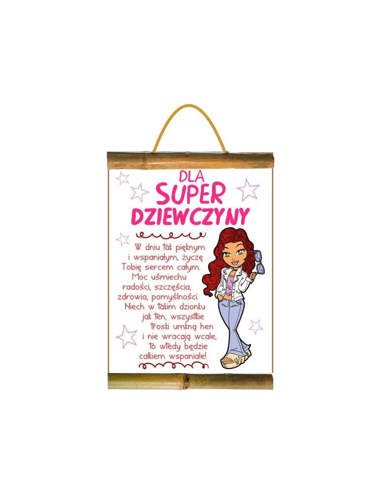 Dyplom w formacie A4 (21 x 30 cm ), ozdobiony bambusową listewką i zawieszką z naturalnego sznurka.