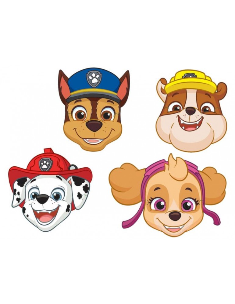Maski papierowe Psi Patrol 9914246BZ Chase Marshall Skye Rubble 25 x 25cm, 8szt.