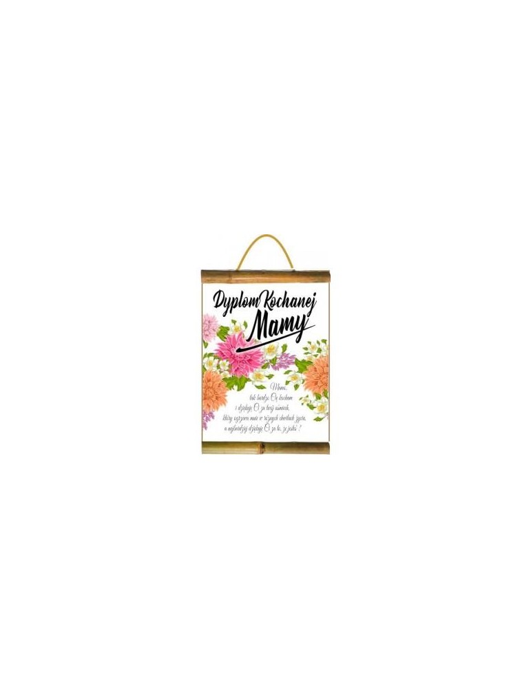 Dyplom w formacie A4, Z bambusową listewką i zawieszką z naturalnego sznurka.