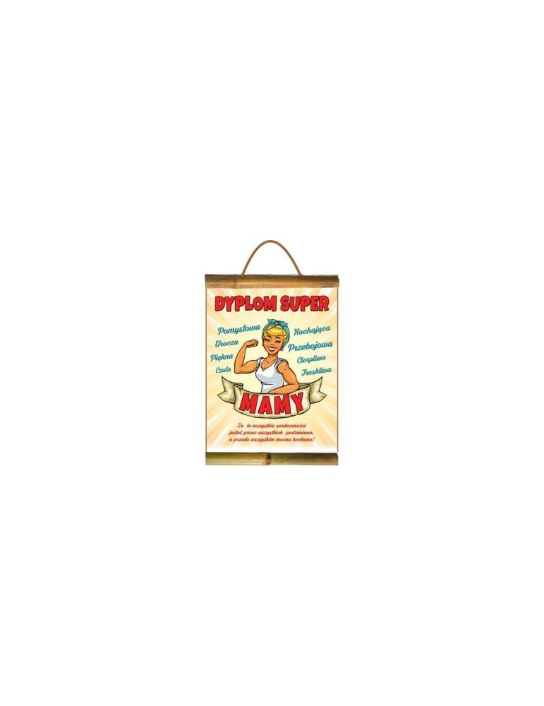 Dyplom w formacie A4, Z bambusową listewką i zawieszką z naturalnego sznurka.