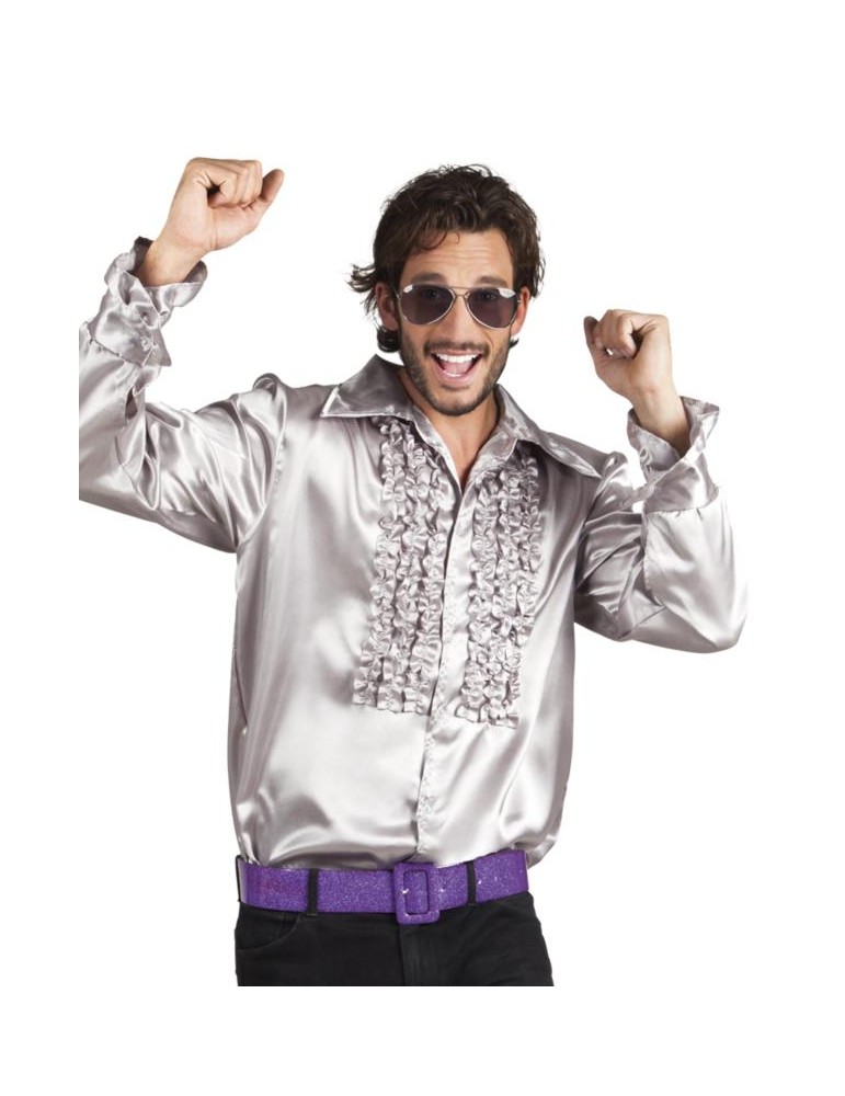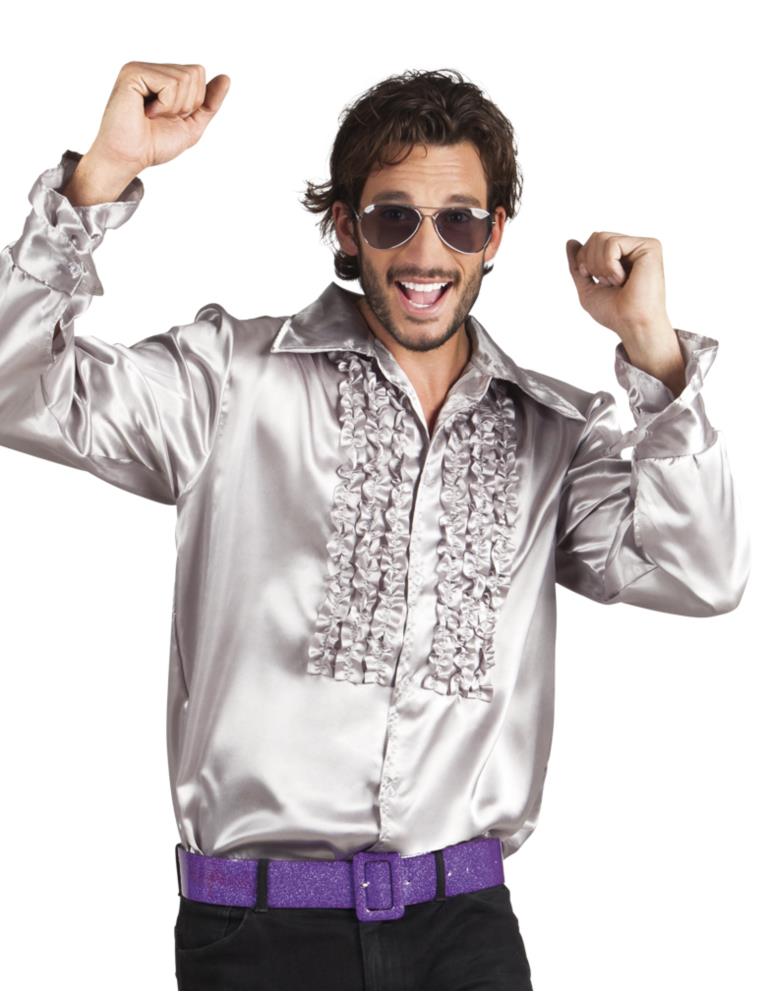 Strój dla dorosłych - Koszula Disco srebrna z falbanami.