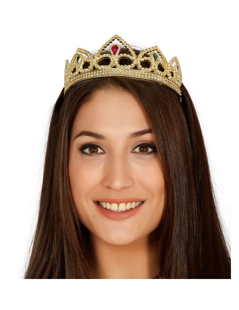 Diadem księżniczki w kolorze zotym, ozdobiony kolorowymi kamieniami