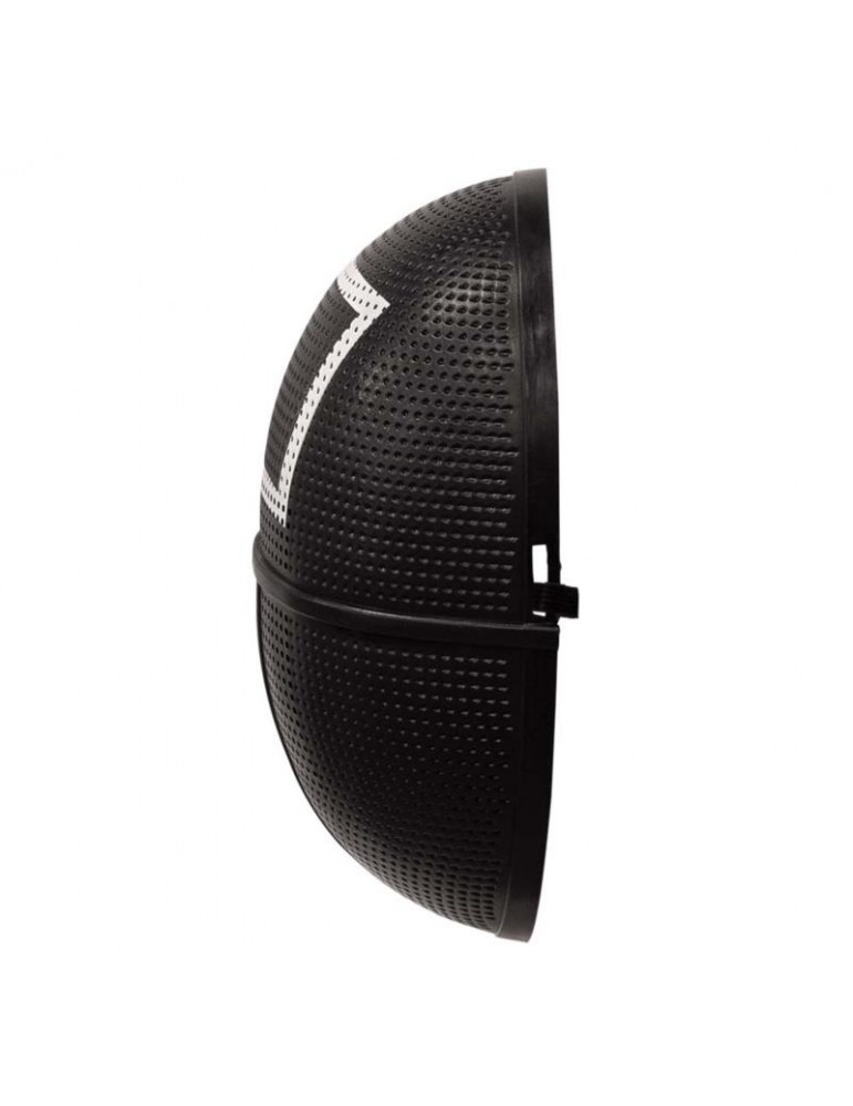 Maska wykonana z tworzywa sztucznego, mocowana na gumkę.