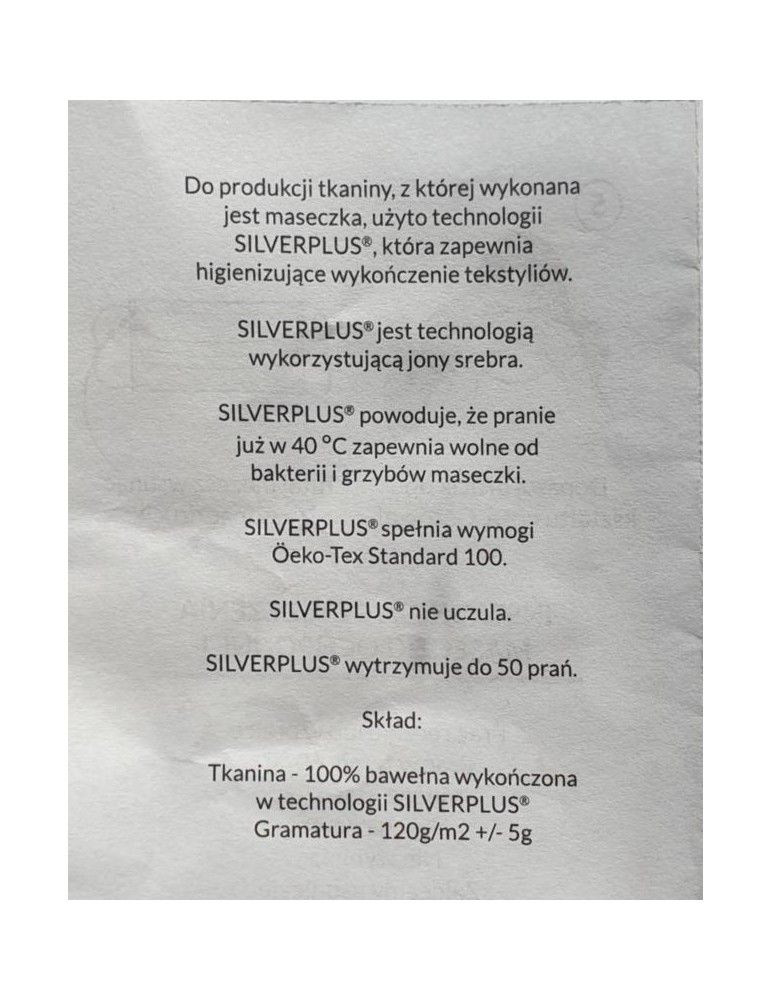 Skład: 100% bawełna wykończona w technologii SILVERPLUS ( spełnia wymgi OEKO-TEX Standard 100)