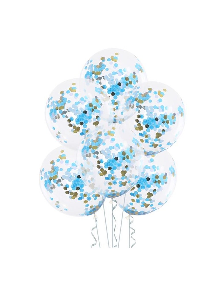 Balony z konfetti niebiesko-złotym 12cali 4szt | Balony lateksowe